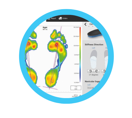 STEP 1 – FOOTSCAN® AND ANALYSIS: Begin with an in-depth interview about your medical history and activities. Our experts then use our custom-developed dynamic Footscan® system to scan and analyse your gait.